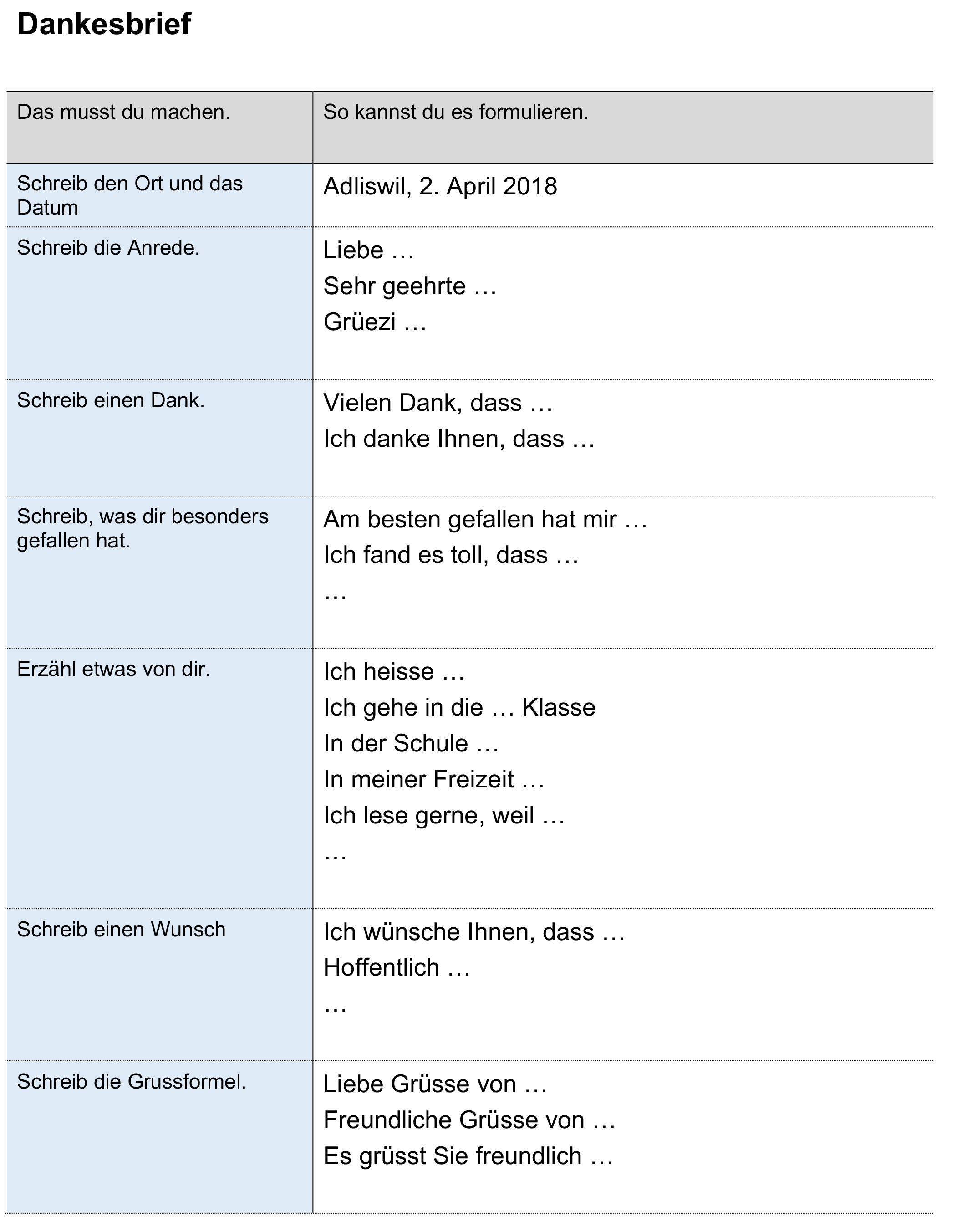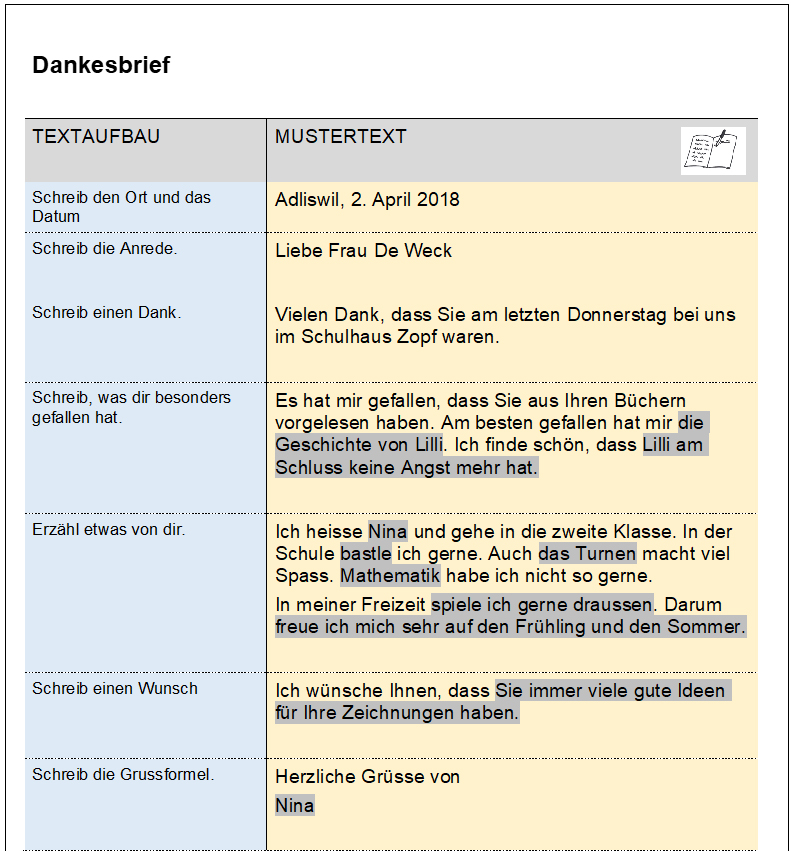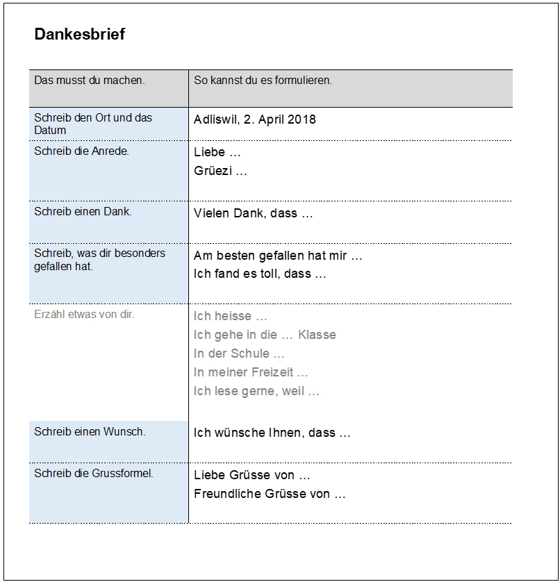 Vereinfachter Schreibplan, zusätzlich mit einem «freiwilligen» Textteil (grau)