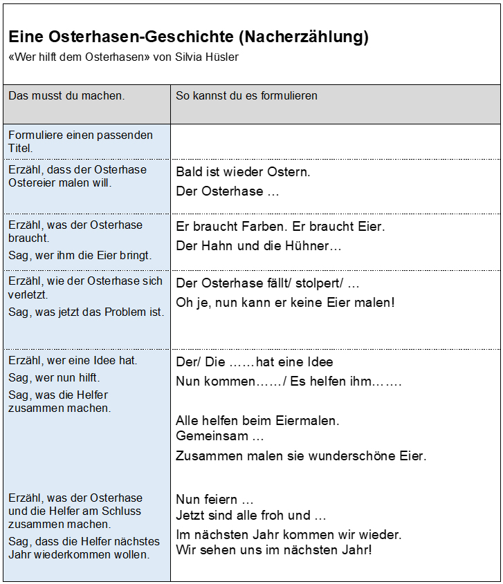 - Was soll im Voraus in der DaZ- oder IF-Gruppe erarbeitet werden (z.B. Wortschatz, Formulierungen, Textaufbau, Textbausteine)?