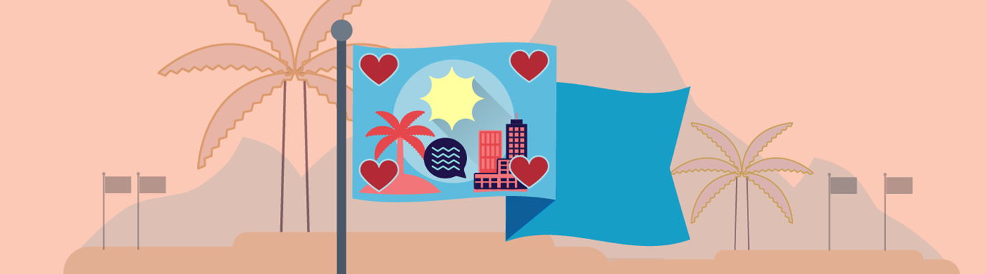هذا علمي. في وسطه شمسٌ متلألئة هي رمز الطاقة والضوء. تذكّرني خلفيّته البيضاء بالبحر. فيما ترمز الجزيرة الصغيرة وعليها نخلة إلى السلام والسكون. لكنّني أحبّ المدن أيضًا والتواصل ومشاركة أفكاري ومشاعري. لهذا وضعت قلبًا واحدًا في كل زاوية من زوايا علمي.