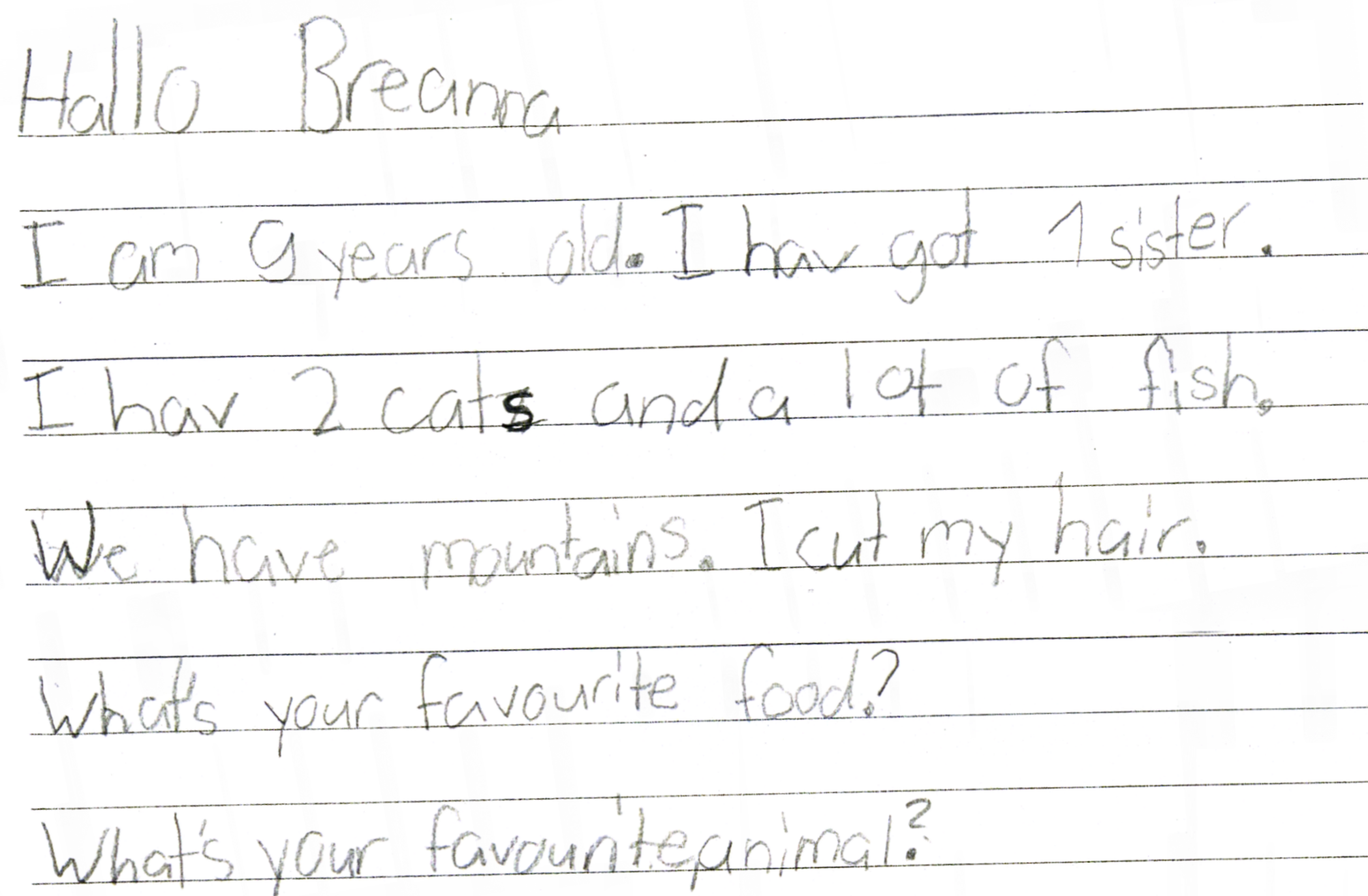 And even beginners are capable of having exchanges! This letter exchange was organized through Epals and many children write their pen pals through secondary school.