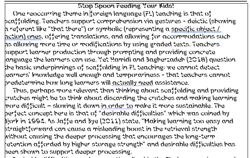 - Do you know how to apply the concepts of desirable difficulties to English language teaching? Do you have any critiques of any of these concepts?